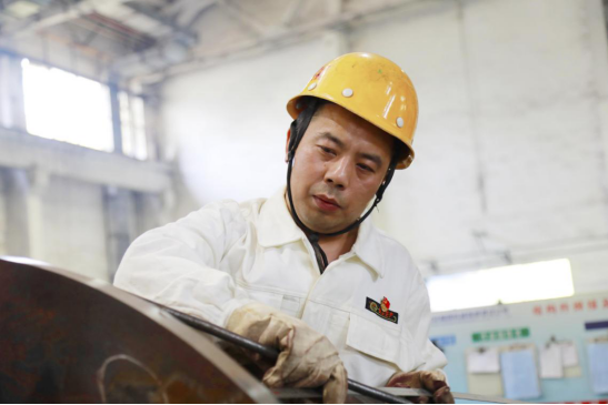 某重點項目管體結構焊接是中國船舶武漢船機鋼構制造部勞動競賽項目之一,電焊一組組長邵剛在接到生產任務后,帶領組員熟悉焊接工藝,參加技術交底,了解質量控制要點,制作焊接工裝,保證了產品的順利展開。在管體對接環形縫焊接過程中,邵剛帶領大家克服因管體數量多、節點要求急、臺架數量有限等困難,合理利用臺架,輪流加班,做到人停機不停。由于焊接空間非常狹小,他不畏困難,鉆進管體跪著施焊,從細節入手優化焊接過程,運用自行設計制造的埋弧焊焊縫“坡口指示裝置”焊接,緊盯焊縫位置,認真觀察焊機機頭與焊縫熔合處的狀態,隨時調整機頭焊絲方向和焊劑的熔敷狀況。他嚴格執行工藝紀律,用點溫計檢測每一道焊縫,保證層間溫度達到工藝要求,保質保量完成了焊接任務,管體焊縫一次檢驗合格率達100%。